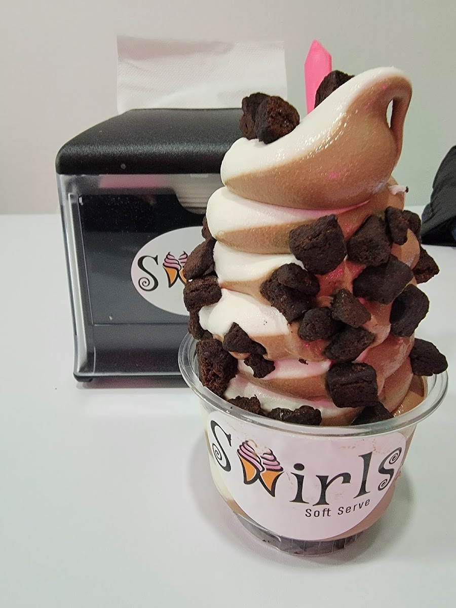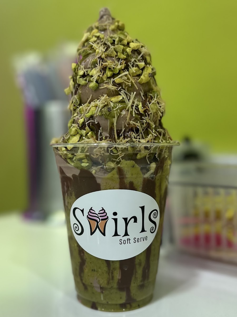Swirls boasts a vibrant menu with: • Gelato-style soft serve and non‑dairy Dole whip (pineapple & mango). • A wide range of creative swirling flavors, like matcha, strawberry, Thai tea, butter pecan, and pineapple. • Eye-catching signature combos: • Dubai Chocolate Cups with pistachios, kataifi, Nutella, and pistachio cream. • Swirls Specialties such as Highlander (pineapple dole whip with coconut & mochi), Matchocolate, Mexicali, Broadway, and Cherrybomb. Swirls Soft Serve is more than just dessert—it’s an experience, offering a playful and richly flavored treat in a friendly, accessible setting. Whether you’re into nostalgic classics or adventurous sweet swirls, this dessert shop delivers both quality and creativity.