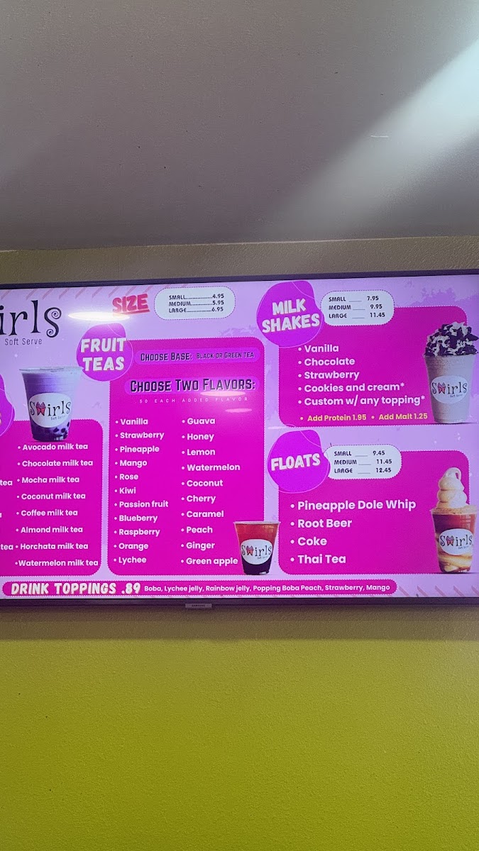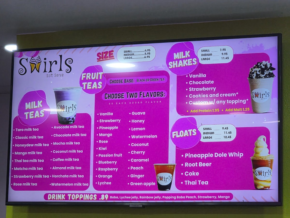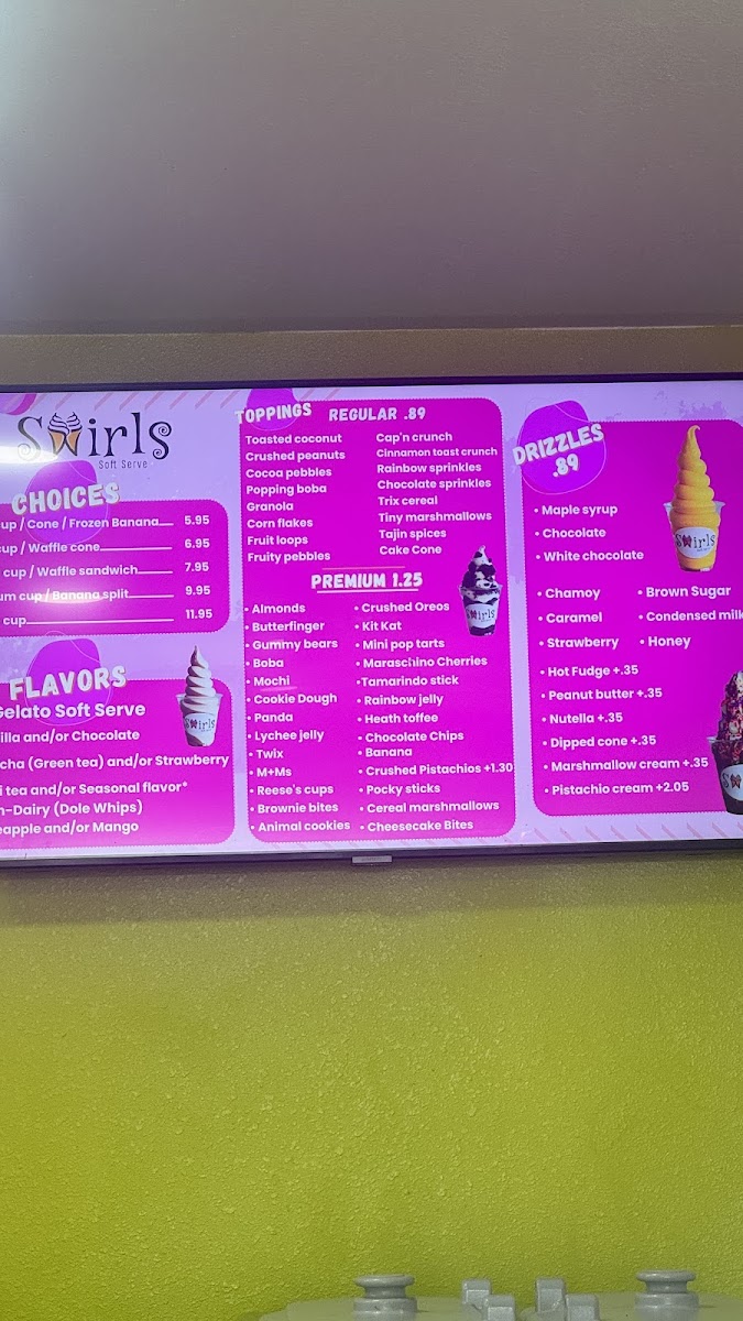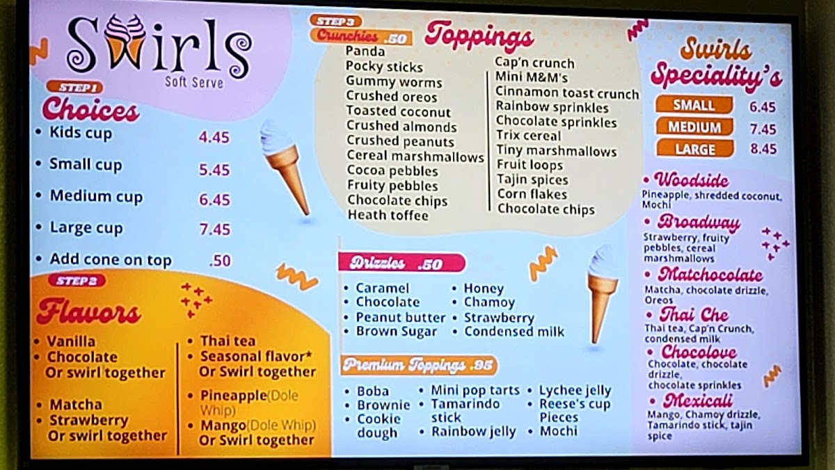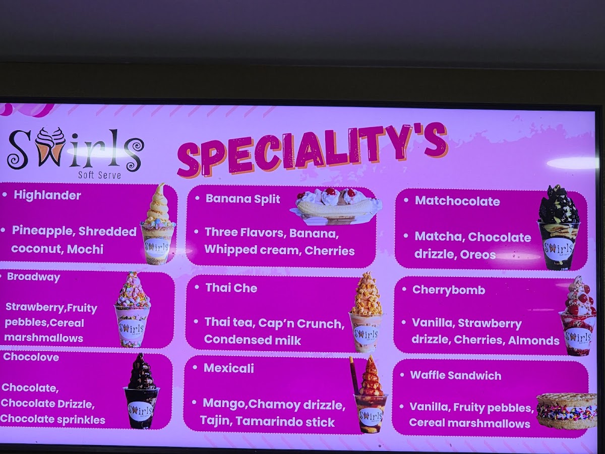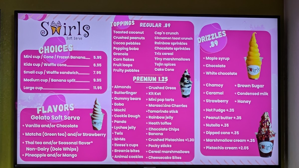 Swirls Soft Serve Menu