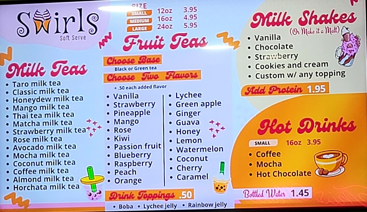 The menu at Swirls Soft Serve offers a relaxed, approachable range of indulgent treats and refreshing drinks, perfect for casual afternoons or light evening outings. This neighborhood spot blends the simple joy of soft serve and frozen yogurt with creative twists inspired by bubble tea culture and international flavors.
